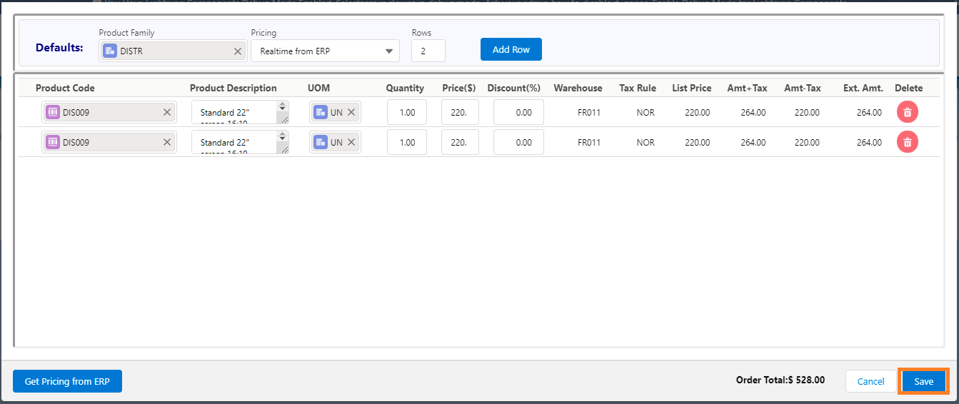 - Finally, clicking the Add Row Button you will be getting the below screen where you will have to select the seen Product line Item.