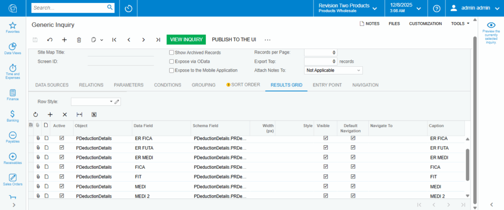 When you start building GIs in Acumatica, everything feels pretty straightforward. You grab a couple of tables, join them, add a filter or two, and the result shows up exactly how you expect. But once you get into real payroll or finance setups – things like taxes, earnings, deductions, employee types – you suddenly notice that many GIs rely on the same set of fields.