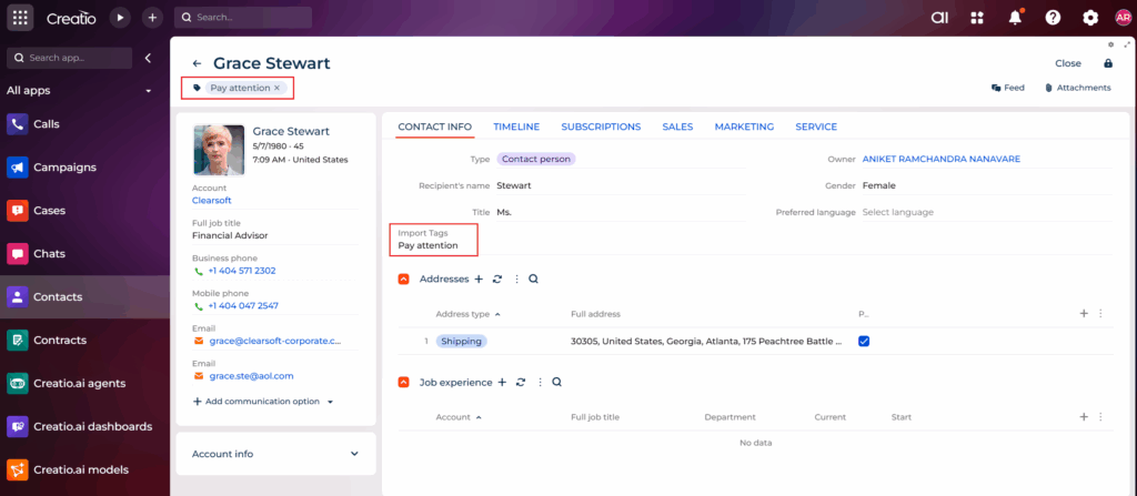 In Creatio, Tags are stored in a related object (many-to-many relationship). The standard Excel import allows mapping fields that belong directly to the Contact object, but it does not easily allow mapping to the Tag relationship.