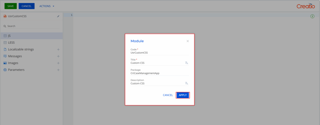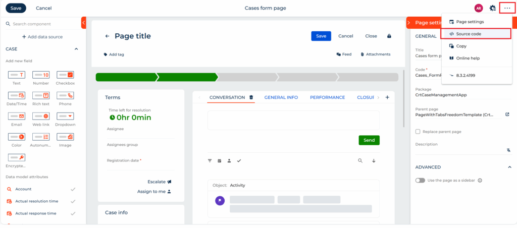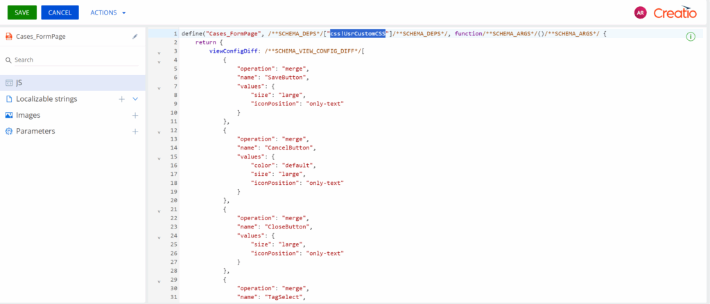 Navigate to the Case form page. Click on the three dots (⋯) and select Source Code. Add the CSS module to the imports section by adding: css!UsrCustomCSS