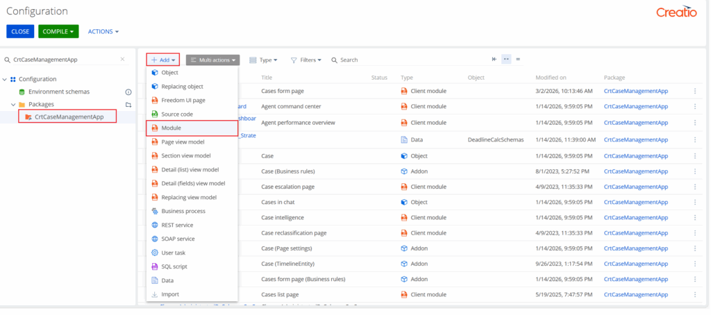 2. Find the package related to Cases: CrtCaseManagementApp.