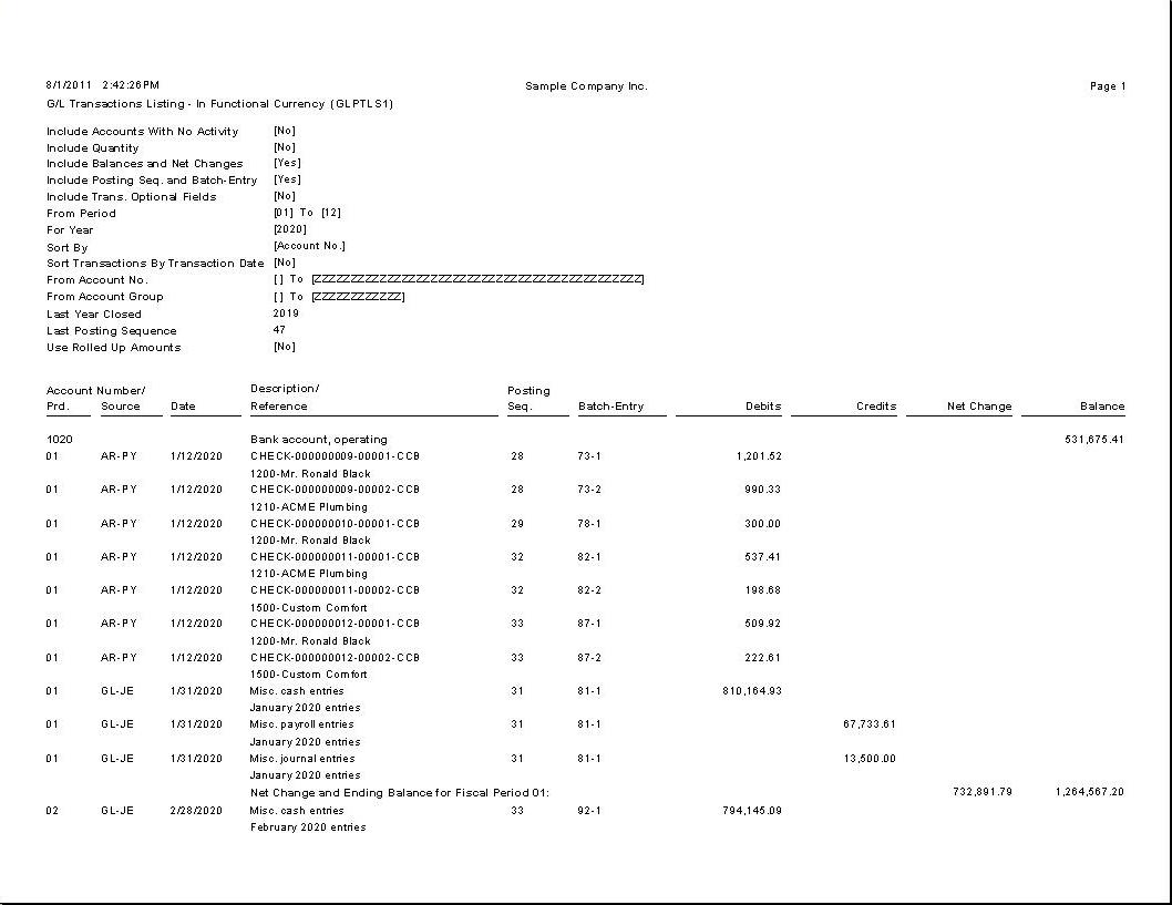 As you know Out Of the Box GL Listing Report displays information like Credit, Debit, Net changes and Balances with Batch Entry Details grouped under Accounts in the selected range. Recently we received a requirement where they wanted to view this information at Account Level.