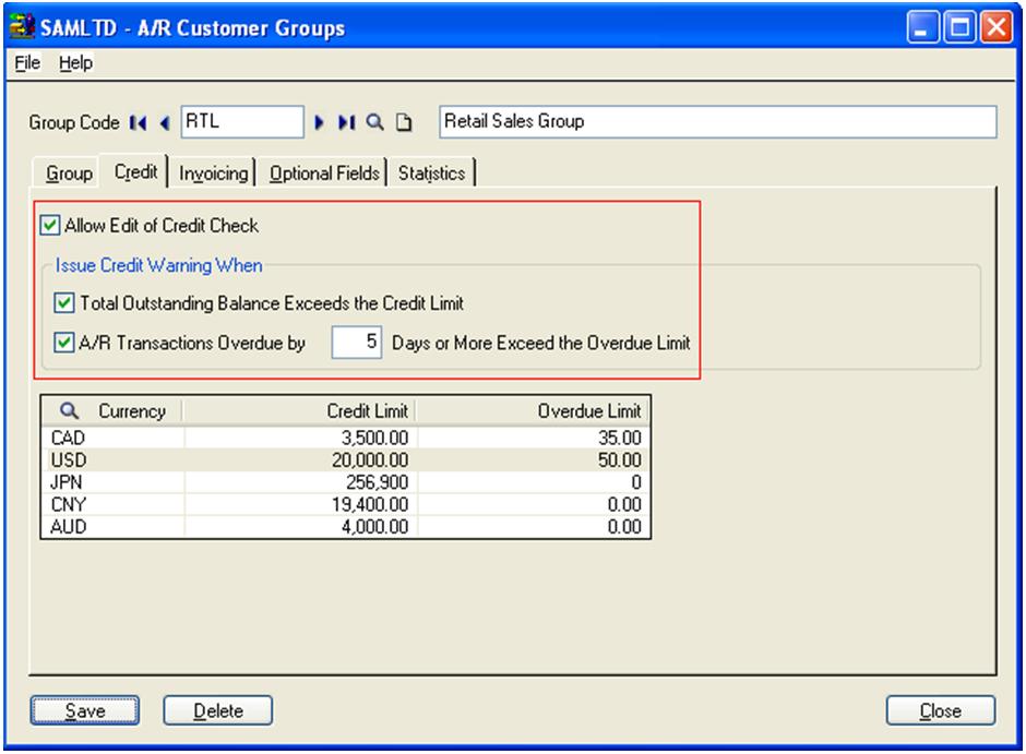 Above options will only get enabled when Allow Edit of Credit Check Option is checked in Credit tab of AR Customer Group Code UI for the group code of corresponding customer.