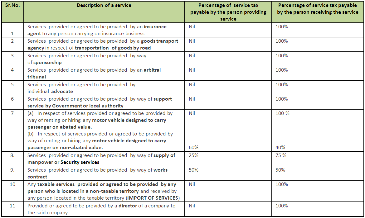 Let’s see the rules and terms of how government has formed the structure of reverse charge for service tax.