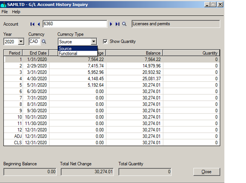 For Multi-Currency system, you can display source currency balances and their functional equivalents. If the account that is selected is defined as a Multi-currency account, then select a currency and the currency type (Source or Functional) in which you would want to display the account balances.