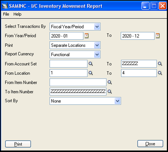 Please find below the UI screenshot of the “Inventory Movement” report of Sage 300 ERP (Accpac).