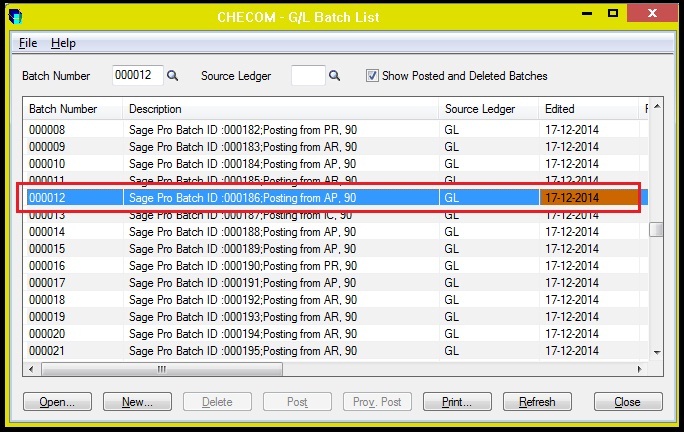 Sage 300 batch listBelow is a screenshot from Sage PRO system containing the header of Batch no – 000186.