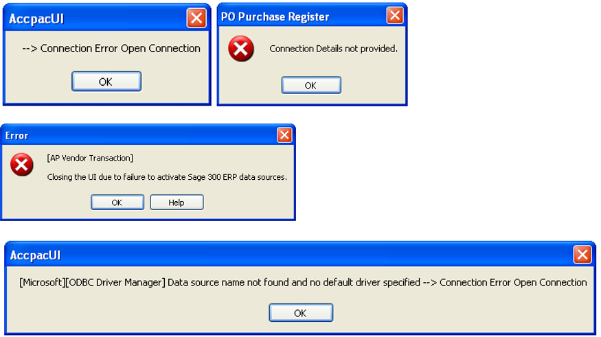 ⦁ Closing the UI due to failure to activate Sage 300 ERP data sources.