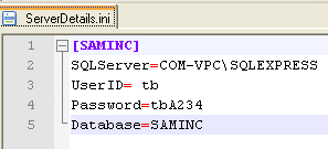 ⦁ Add the server connection details in encrypted format in ServerDetails.ini file which is placed in <SAGE installable path>. Please refer the below screen shot.