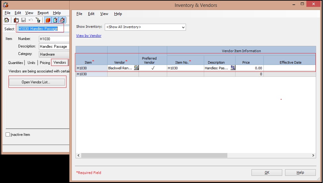 In below screen-shot you can view the vendors associated with the Inventory Item in Sage 50 CAD,