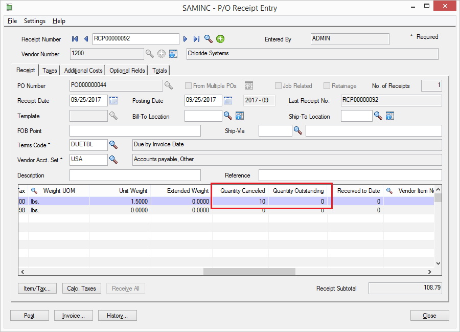 - Entered “Quantity Outstanding” as 0 for the products not received.