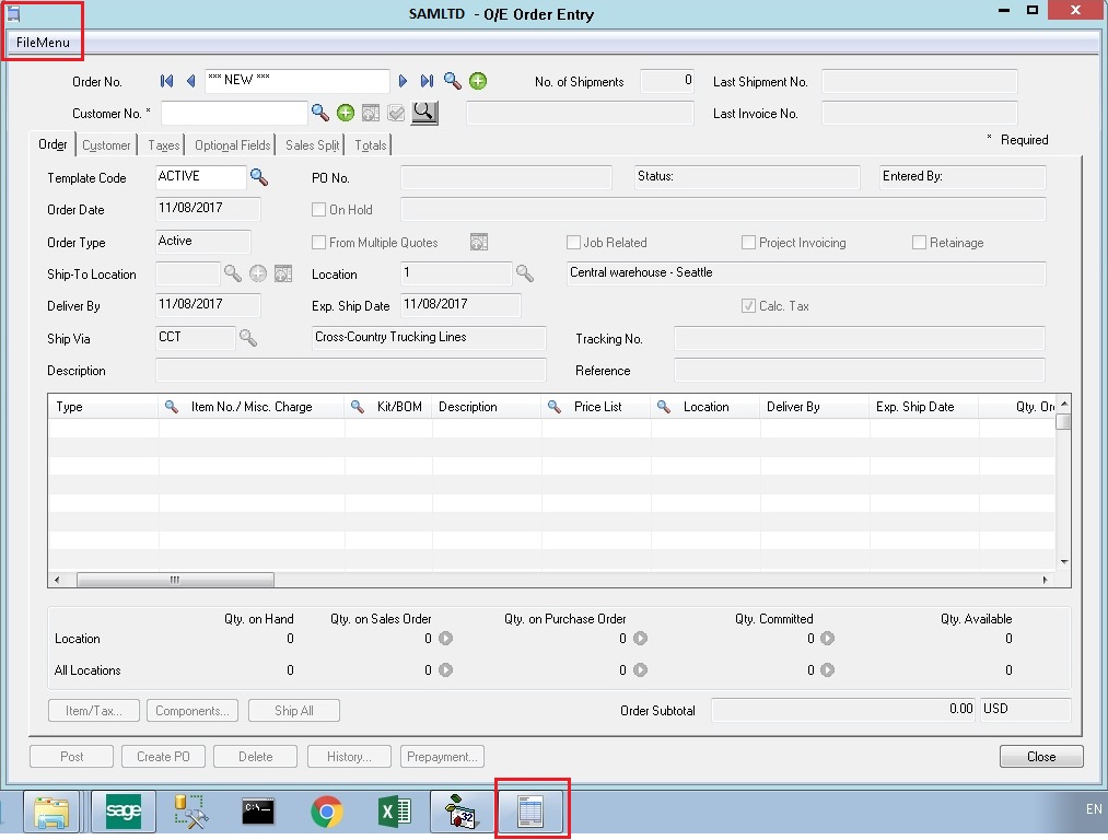 101 “O/E Order Entry”