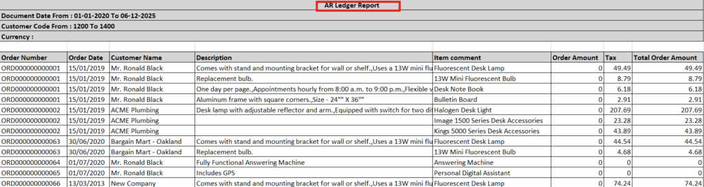 In this way, the report provides a clear picture of AR Ledger Report, enabling better decision-making and effective monitoring of business growth. We can also customize this report output with required additional fields.
