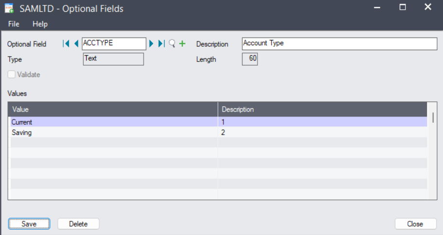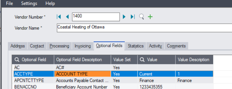In Sage 300 ERP, Banks require different file formats or identifiers based on the type of bank account for example, Current Account or Savings Account. However, Sage 300 does not provide a standard field in the Vendor master to store account type information that can be directly consumed by a bank integration program.