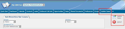 Now it is available in Sage CRM to update multiple records through a single update. We have a tool which we have build for Case Entity; we have added a new tab named “Update Cases” under MY CRM, which will display the search screen for Cases, where user can enter the search criteria for searching the cases.