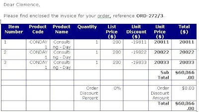 After clicking on “Send Order” button against Order, the mail merge will display the list of Line items in the document as shown below in the order set by user.