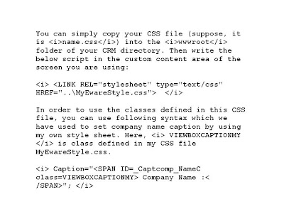 Now in SageCRM, if you want to include your own created CSS rather than standard CSS of CRM. Here is how you can achieve it.