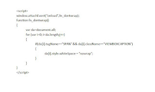 Note: Here the NOWRAP property is applied to SPAN element, it can either be applied to TD element if required. The above script will apply this property to all the span elements matching criteria.