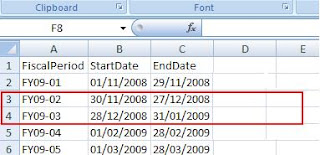 ii). Logic can be written in Table level script or SQL trigger in order to update the value in this field based on actual “Created Date” field value. So if Created Date falls in the date range of fiscal period 06 of year 2009, then the Created Date (FY) will be set to FY09-06.