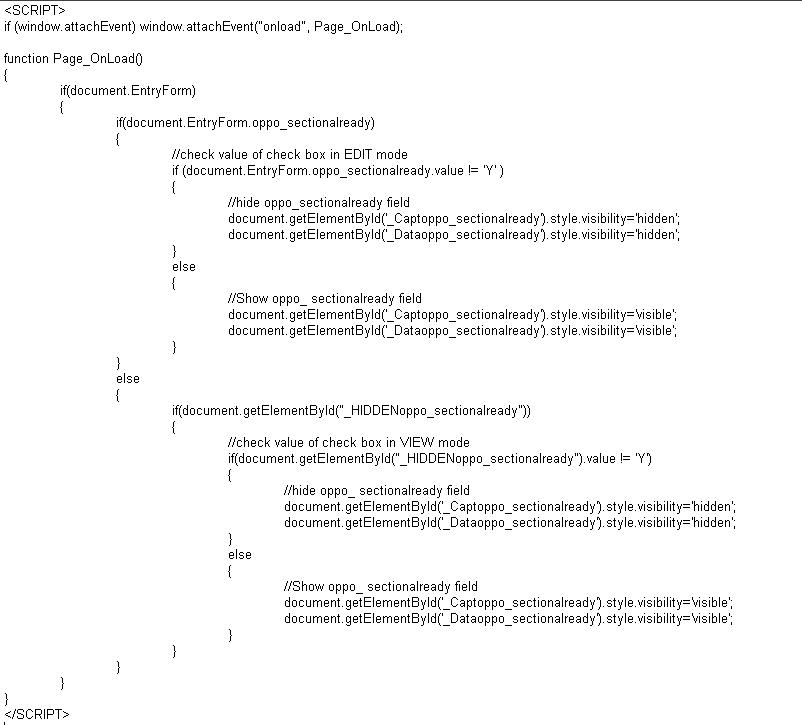 In View mode using document.getElementById(“_HIDDENoppo_sectionalready”)