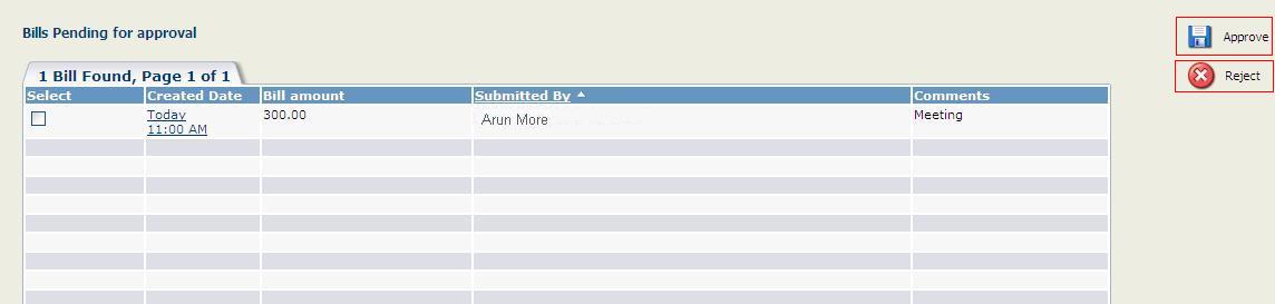 He can also Approve or Reject multiple bills at a time or one at a time through Bill summary.