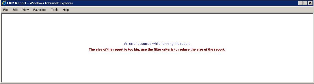 But no luck. The message was still the same. Then I realized that the error message itself says “The size of the report is too big, use filter criteria to reduce the size of the report.” So I just used the filter criteria to run the report and guess what the report runs without an error. I also observed that the issue occurs only if the large reports are run on server whereas it runs without an error for small size reports. Also this is applied by Sage CRM standard to stop very large reports being run by the users. Here is the fix I applied to solve the issue.