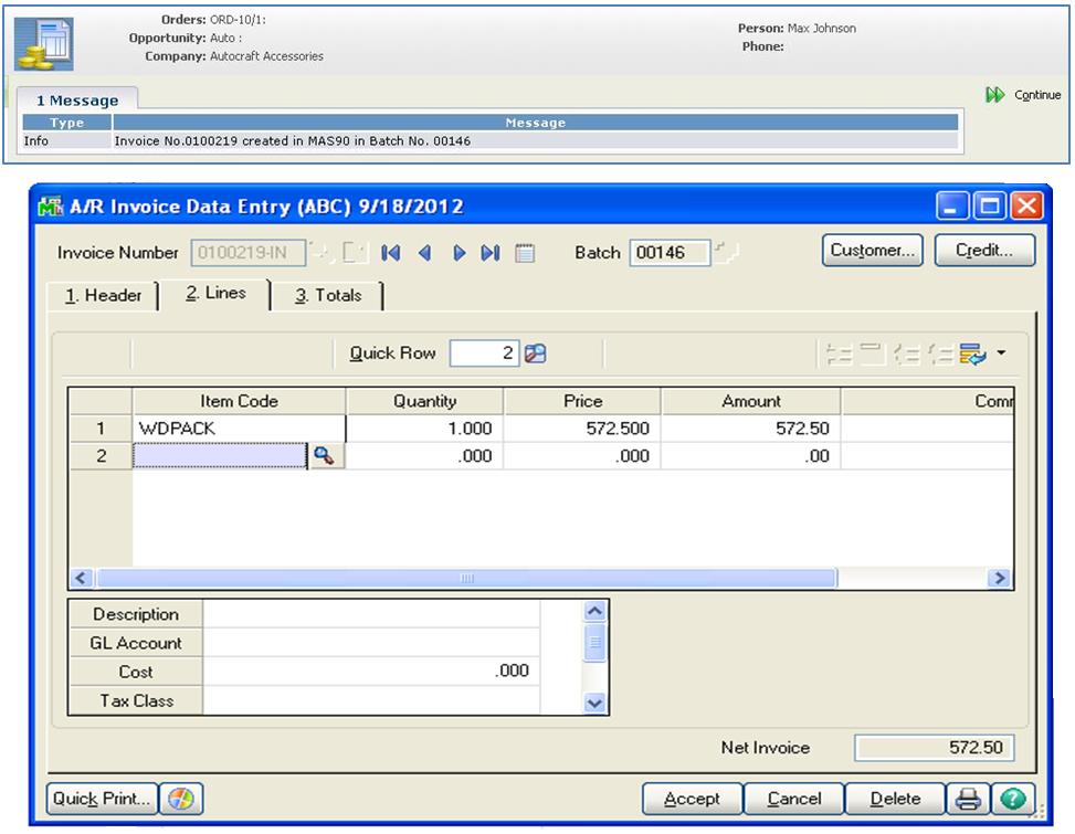 In this way, user can create AR invoice from within Sage CRM and can promote it to Sage 100 using GUMU Integration for Sage CRM-Sage 100 ERP.