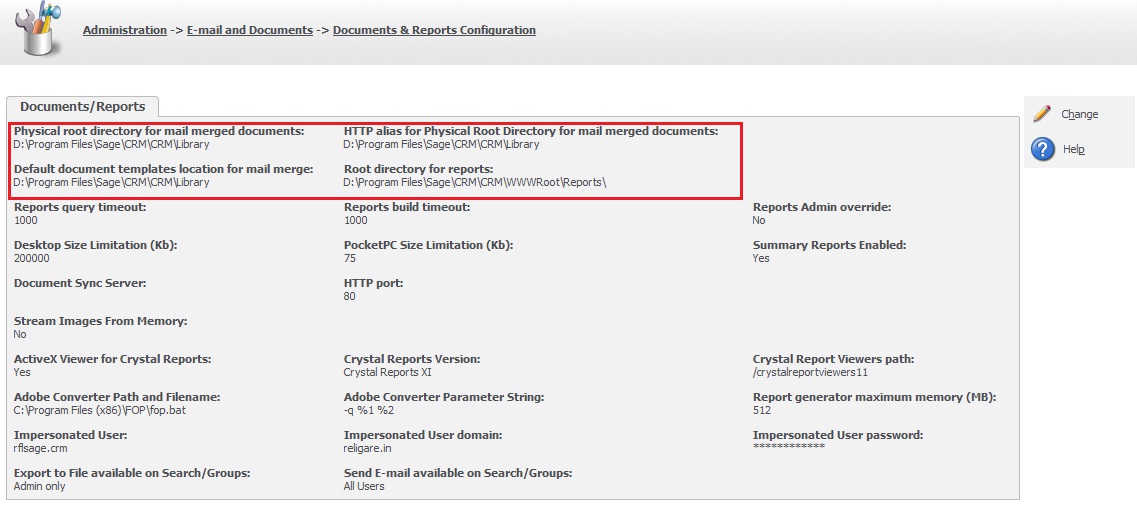 2. Configurations for the library path could be found under Administration | Email and Documents | Documents & Reports Configuration.