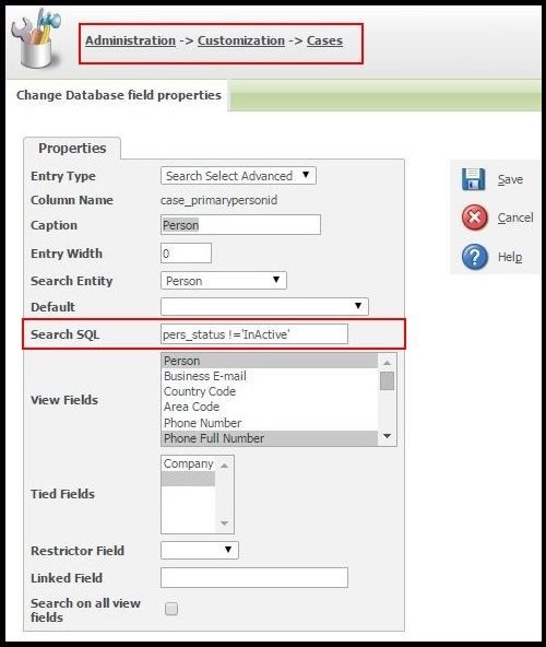 Sage CRM provides your customer care team with the ability to record customer inquiries/incidents. Few days back, we come up with requirement to restrict to display only Active Companies & Contacts to be displayed in Company and Person fields of Case Web Picker screen.