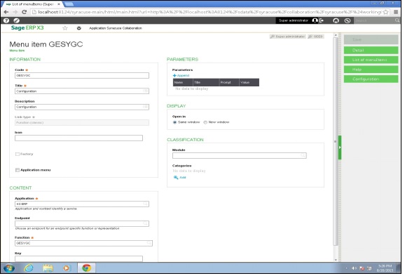 By above steps, we can create Menu Module and Menu items for GUMU configuration screen in Sage X3 side. In our next blog we will go through how to create Menu Sub Modules and Navigation.