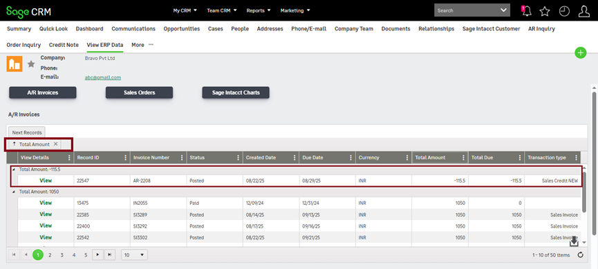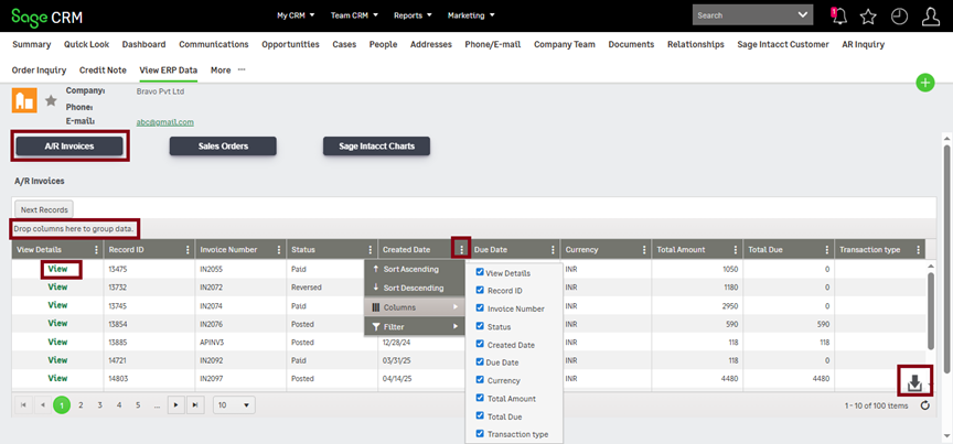 This enhanced interface transforms how users interact with Sage Intacct data, making invoice and order review easier and highly productive within Sage CRM.