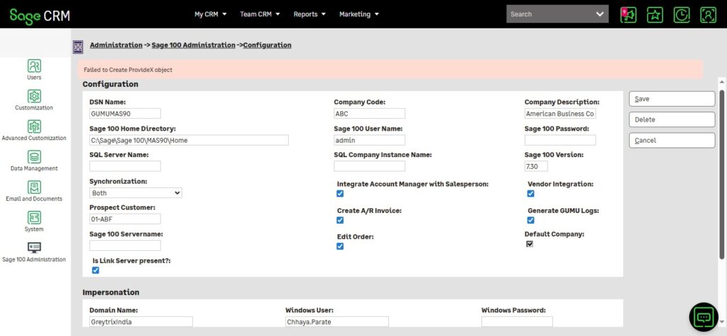 In this blog, we will walk you through the approach to troubleshooting issues that arise when users encounter error messages such as “Failed to Create ProvideX Object” across various GUMU screens within Sage CRM.