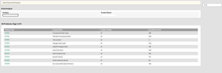When users click the Advanced Product Search hyperlink, a popup window appears, showing a detailed product lookup directly from the Sage CRM database. The search screen displays essential product details such as: