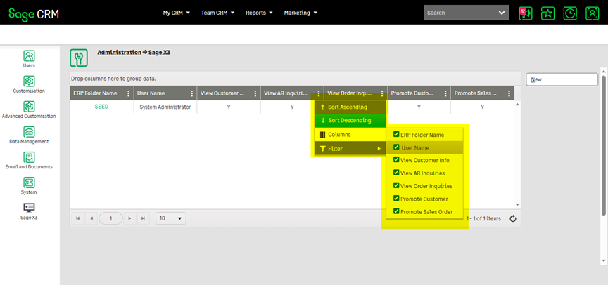 - Navigate to Administration → Sage X3 → Folder Level User Setting