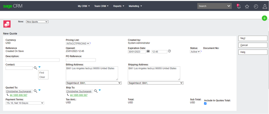 These enhancements ensures that all required transaction-related information is captured directly within Sage CRM. As a result, the Order promotion process is now smoother, more reliable, and fully aligned with Sage Intacct’s transaction structure.
