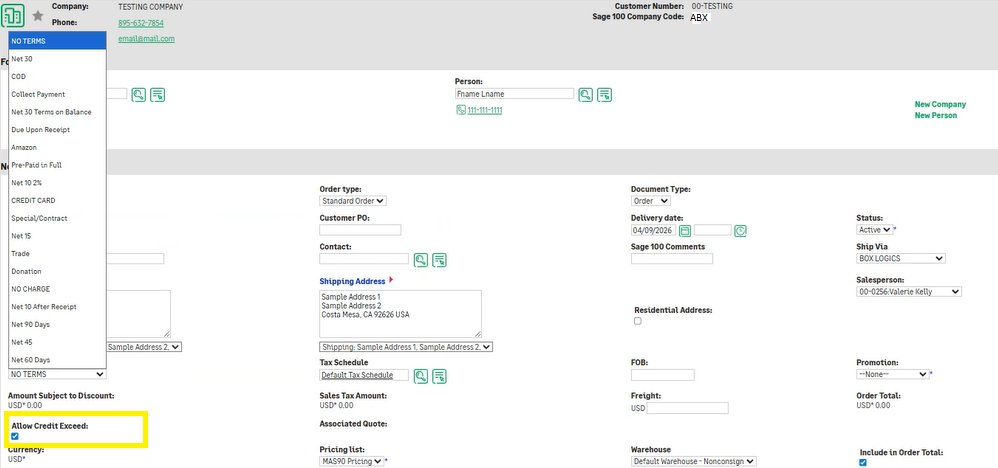 To address this, we implemented a customization that dynamically updates the “Allow Credit Exceed” setting based on Term Code logic from Sage 100.
