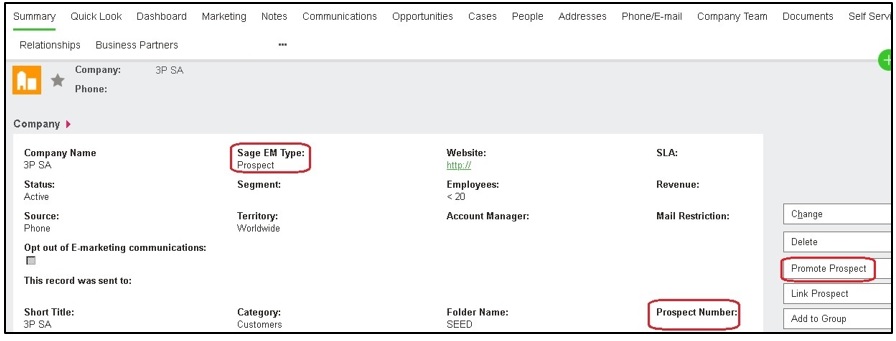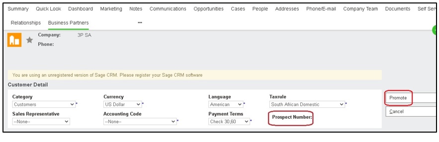 - Create and promote prospect from Sage CRM