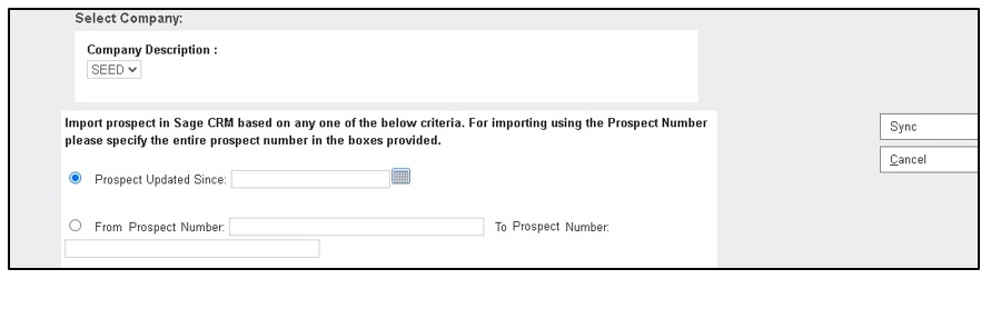 Sync prospects updated or created after a selected date - Prospect Number Range: