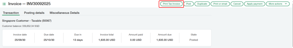New Stuff: – OE Tax Invoice Report In Singapore Localization with Sage Intacct