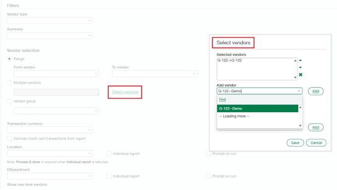 Multiple Vendors: Select a list of individual vendors or a range of them.