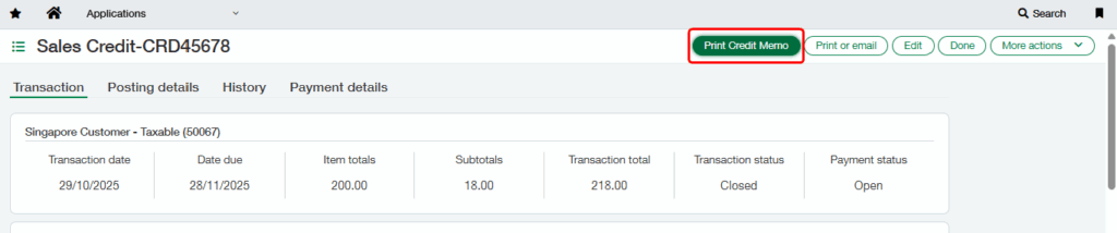 In Singapore Localization, the Order Entry (OE) Credit Note Report in Sage Intacct plays a vital role in maintaining financial accuracy and compliance with GST regulations. A Credit Note is typically issued to adjust, reduce, or reverse amounts from a previously issued Sales Invoice -for reasons such as product returns, price adjustments, or corrections in billing.
