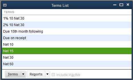 The above screenshots display the Payment terms in QuickBooks