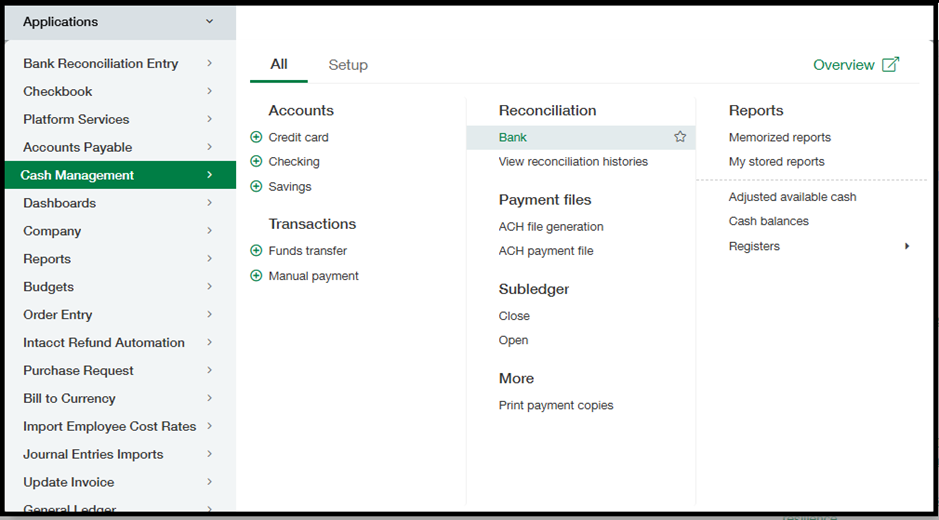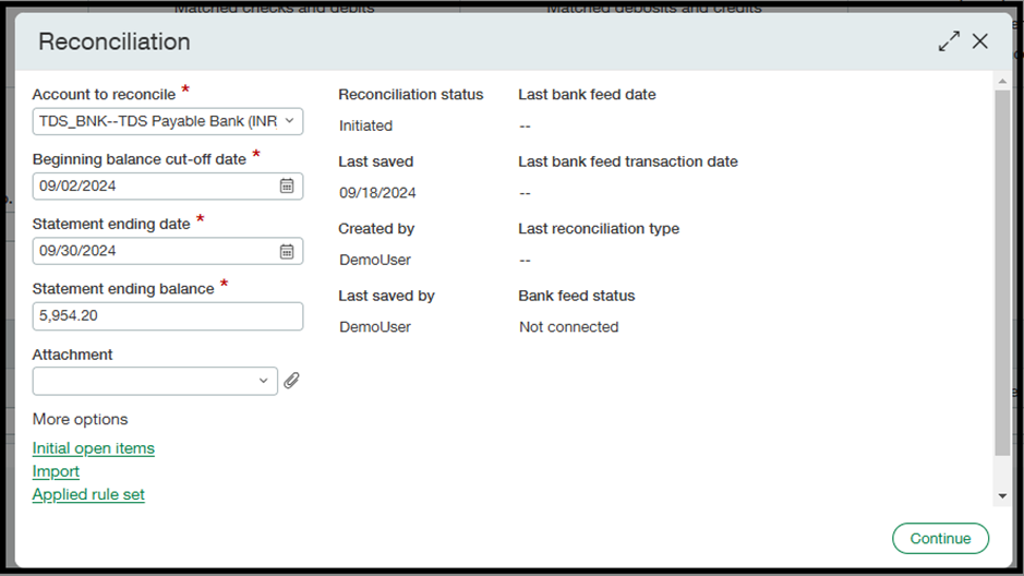 Cash Management > Reconciliation > Bank