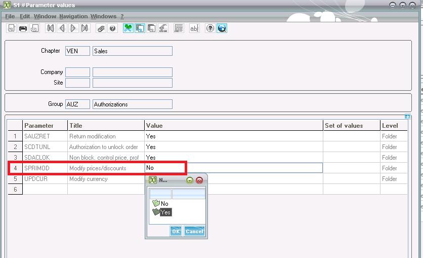 If User select the “NO” The user cannot modify the prices and the discounts or charges on a document. And if user select the “YES” The user can modify the prices and the discounts or charges on the lines of a document.