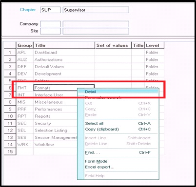 To change the format of the date, navigate to Setup > General parameters > Parameter values. Click on the FMT group and then click on Detail of chapter SUP (Refer below screen shot).