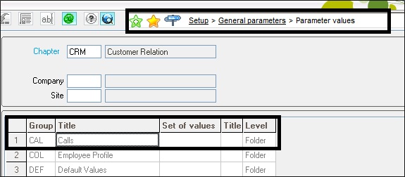 Go to CRM (Customer Relation) node and then Folder sub node and your respected folder. And go to Calls (CAL) Option as shown below.
