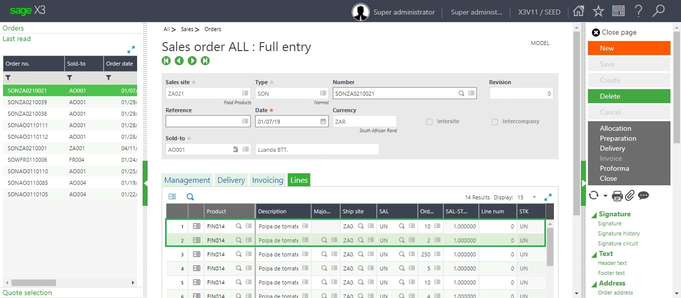 Now create a new sales order with product FIN014 and after creation, a free product will be added on the sales order as shown below: