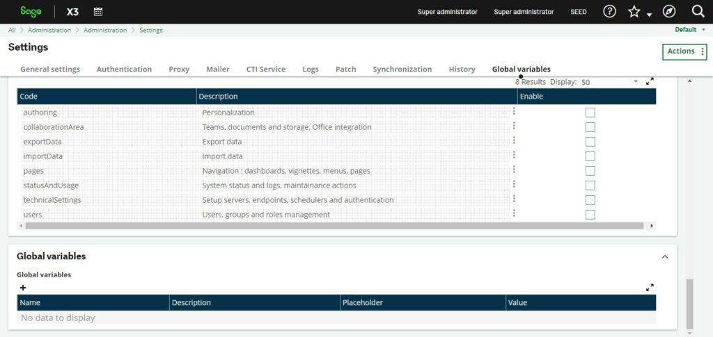 Global settings in Sage X3 are system-wide configuration options, applicable across the entire system, allowing administrators to establish default behaviors and parameters for various modules during initial implementation, ensuring consistent and standardized use throughout the organization’s use of Sage X3.