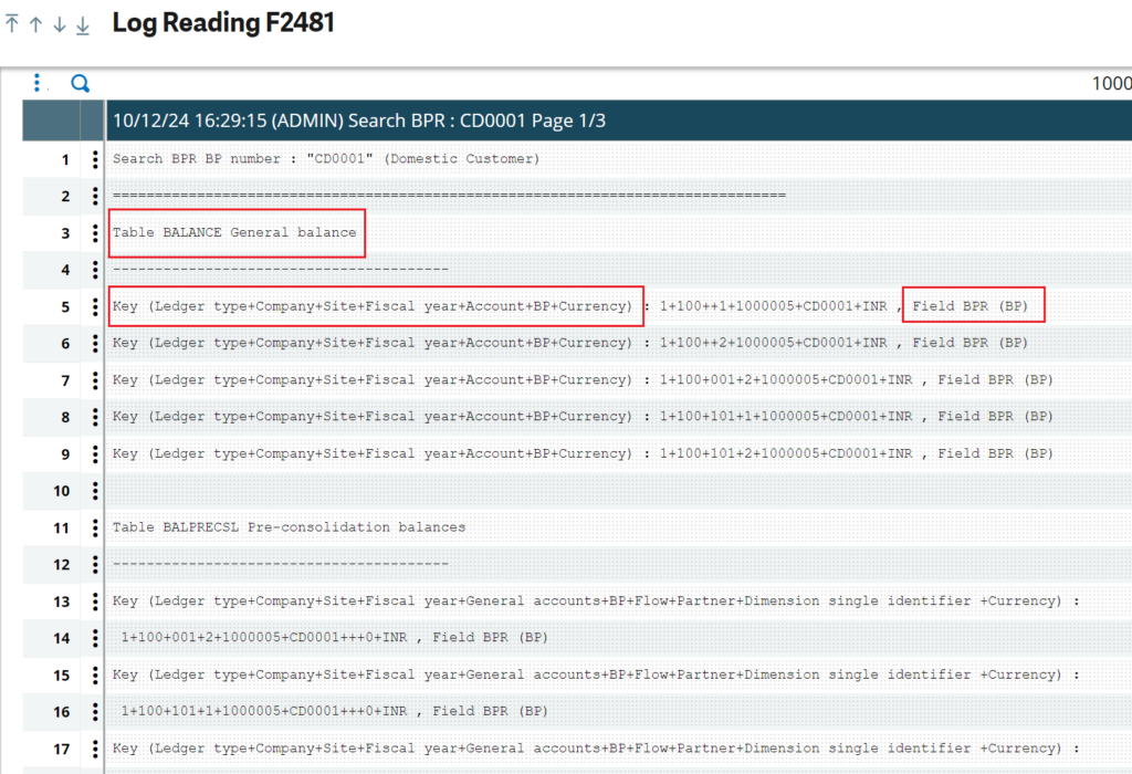 -Once the search is complete, we’ll get the log showing all the references for the Entry (CD0001) within the application tagged with data type BPR as shown in Fig. 4.