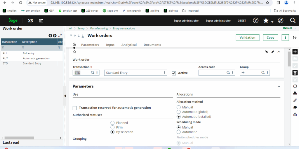 So we changed the work order allocation into detailed in entry transaction of work order.